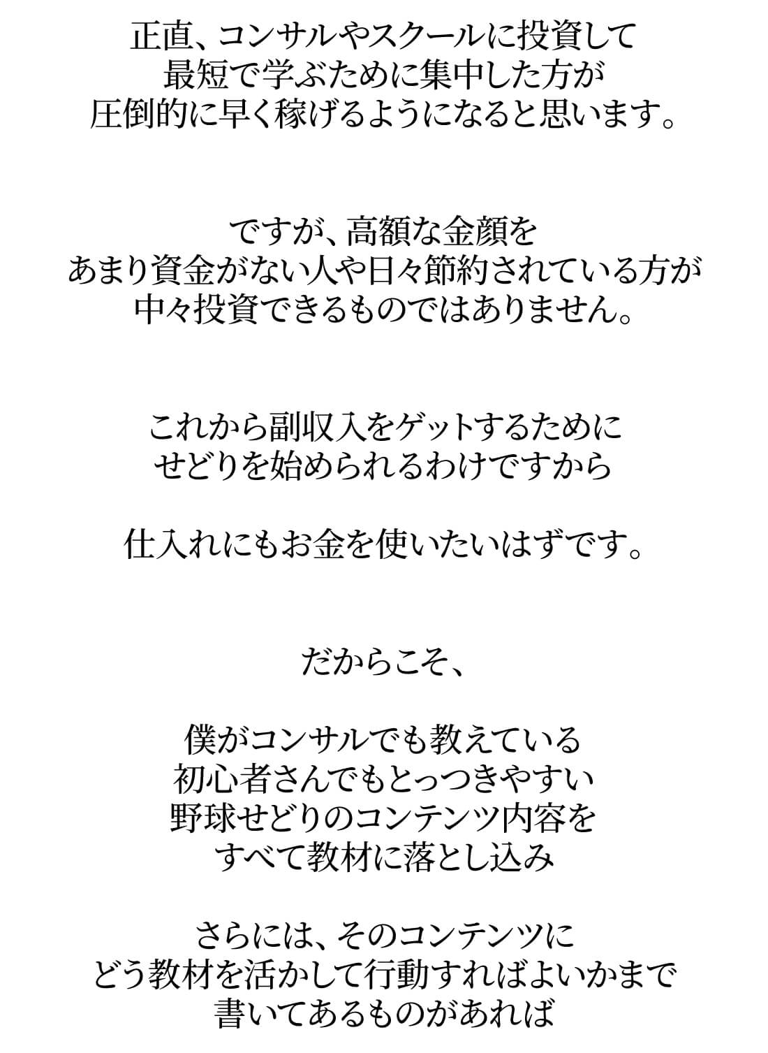 絶対に稼げるということを保証するものではありませんが、知っているのと知らないのとでは限りなく稼げる可能性が異なるというノウハウを詰め込ませて頂いております。